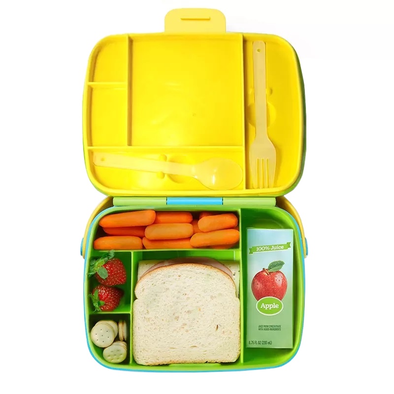 Fitur Produk: - Paketan pembelian termasuk sendok garpu yang bisa ditempel (snap) pada tutupnya sehingga menjadi lebih ringkas dan praktis. - Dengan lunchbox bunda bisa berkreasi dengan bentuk bento yang lucu mensiasati si kecil yang suka pilih-pilih makanan. - Desain dengan ukuran ideal untuk porsi si kecil. - Hadir dalam 5 kompartemen untuk menghadirkan 5 jenis makanan bervariasi. - Termasuk didalamnya kontainer yang cocok untuk minuman kotak favorit (susu UHT, dsb). - Lunchbox dengan handle yang memudahkan anak dalam menjinjingnya. - Sistem pengunci satu tempat sehingga lebih memudahkan anak dalam membuka tutup. - Bisa digunakan untuk anak usia 18 bulan keatas. - Bagian dasar lunchbox dengan lapisan anti-slip - Dishwasher safe, BPA Free. - Plastik tebal sehingga kuat tahan banting.