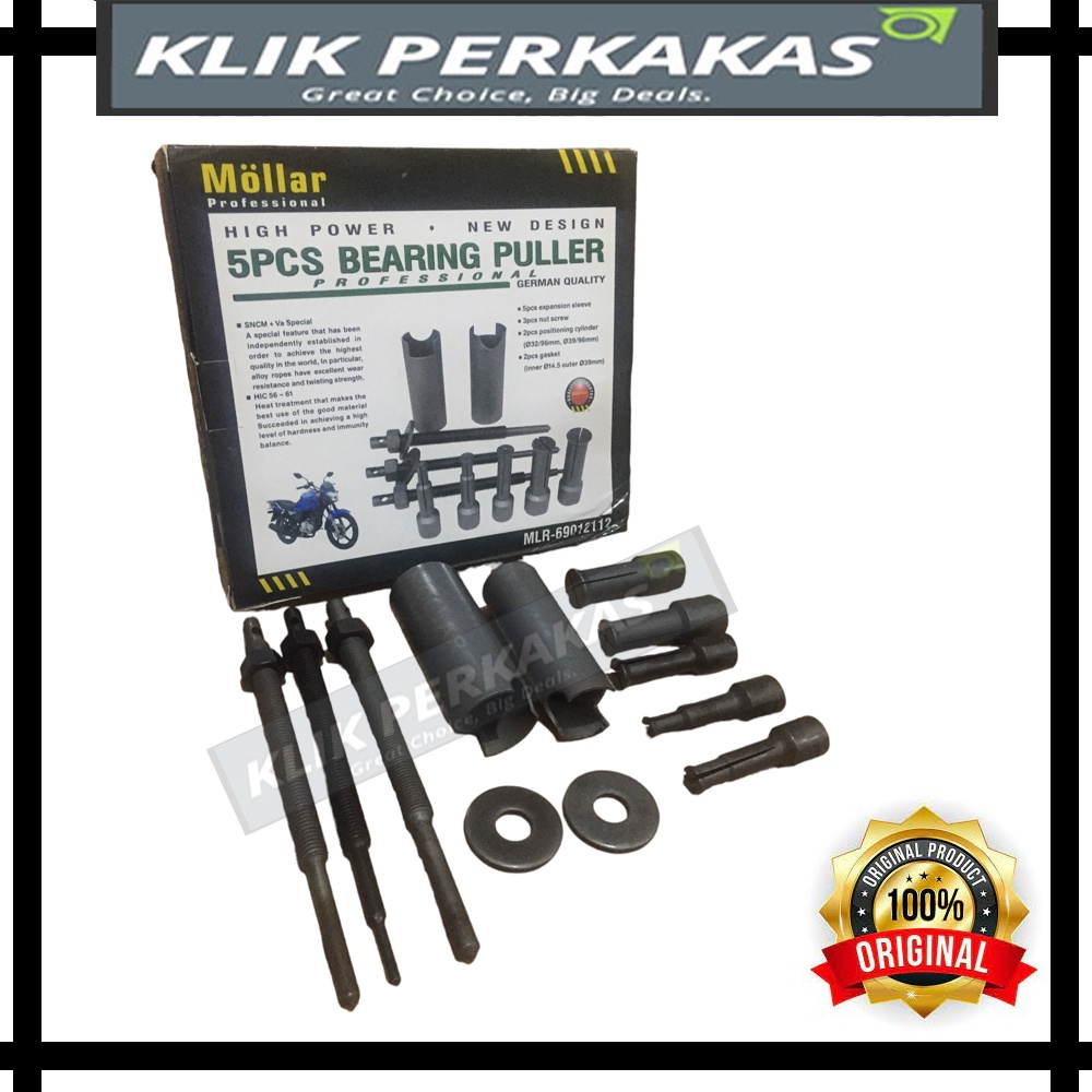 Highlight Produk : - Alat bengkel kualitas standard Bengkel - Untuk melepas bearing dalam pada motor - Terdiri dari 5 buah mata bearing berbagai ukuran - Fungsi : Untuk melepas bearing ukuran : 10 mm, 12 mm, 15 mm, 20 mm, 23 mm