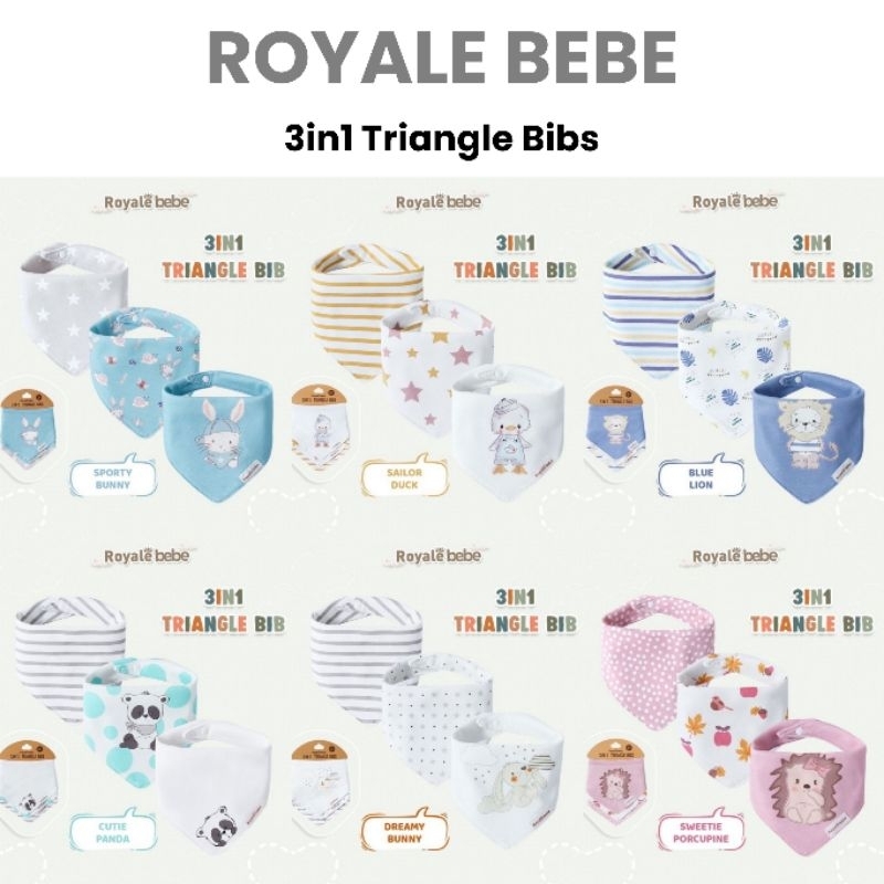 Royale Bebe 3 in 1 Bib segitiga 3 Pcs bib bayi slabber bayi celemek bayi isi 3 PCS