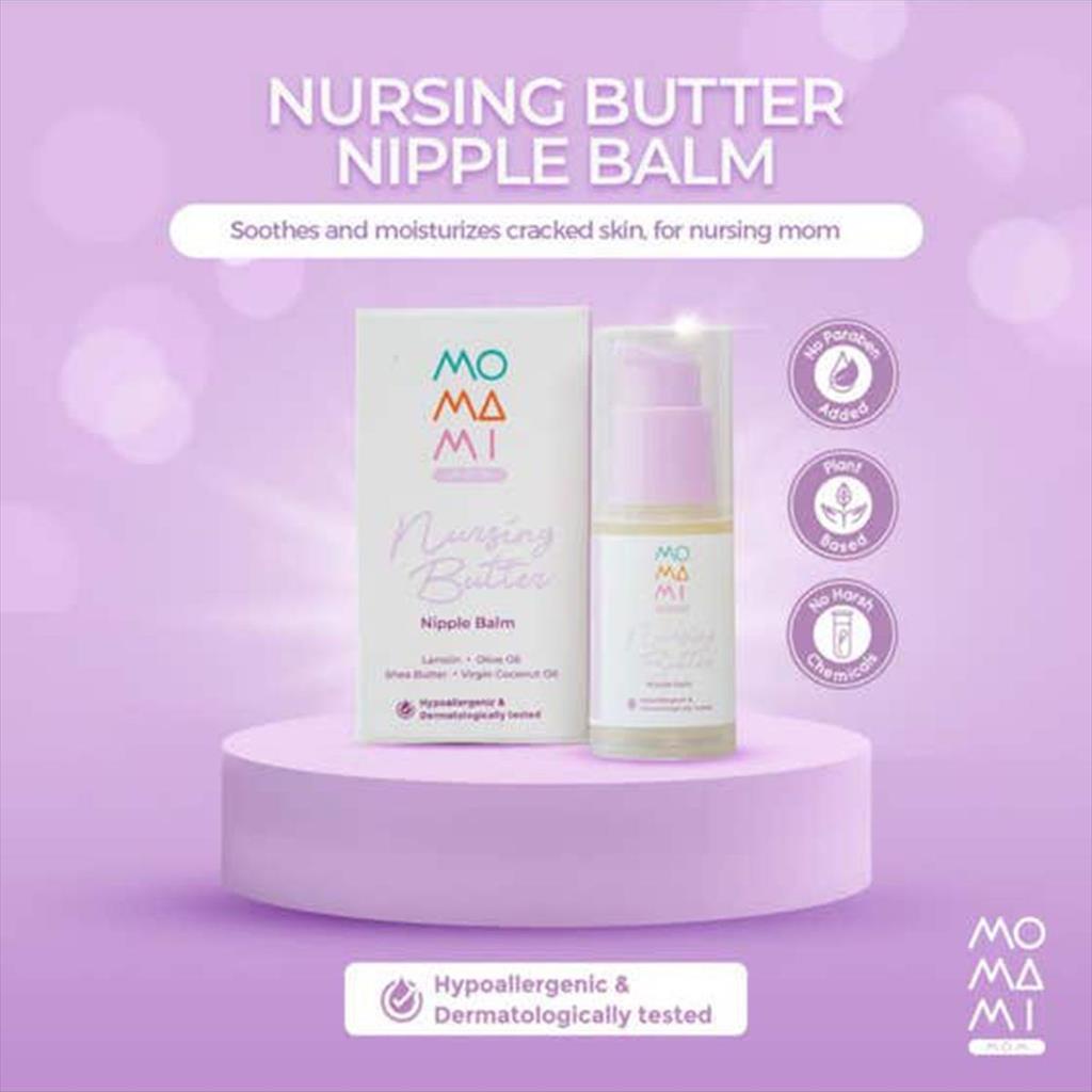 MOMAMI Nursing Butter Nipple Balm 15gr memiliki kegunaan untuk: - Membantu meredakan rasa nyeri dan melindungi puting yang lecet dan luka - Secara efektif menenangkan dan melembapkan kulit kering untuk ibu menyusui, secara langsung maupun pumping