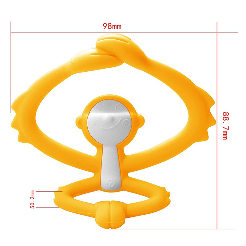 Dirancang dengan bentuk monyet yang lucu dan varian warna yang menarik, terbuat dari bahan silikon yang lembut sehingga aman untuk gusi bayi serta memiliki desain anti tersedak. Memiliki lebih dari 20 cara untuk bermain membentuk lengan panjang monyet dalam berbagai bentuk sehingga meningkatkan kreativitas dan imajinasi serta membantu perkembangan otak si kecil.