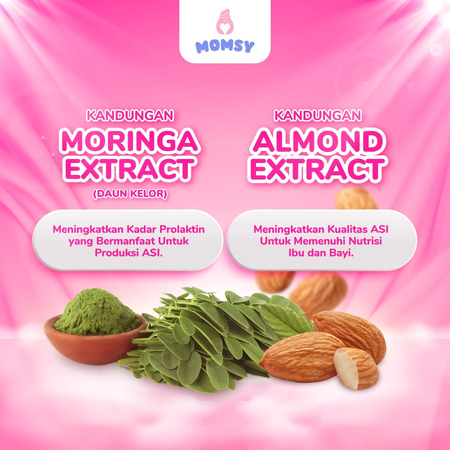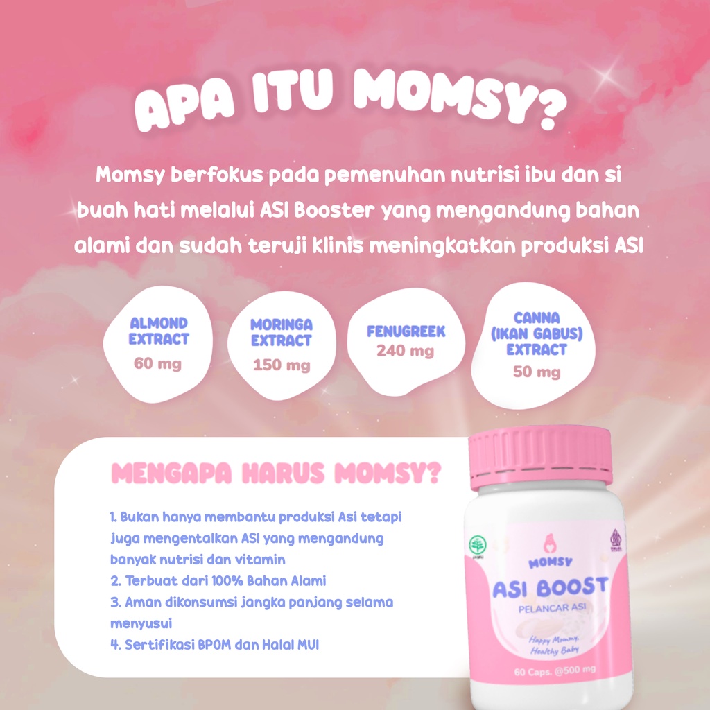 ✅Momsy berfokus pada pemenuhan nutrisi Ibu dan si buah hati melalui ASI Booster yang mengandung bahan alami dan sudah teruji klinis meningkatkan produksi ASI.✅