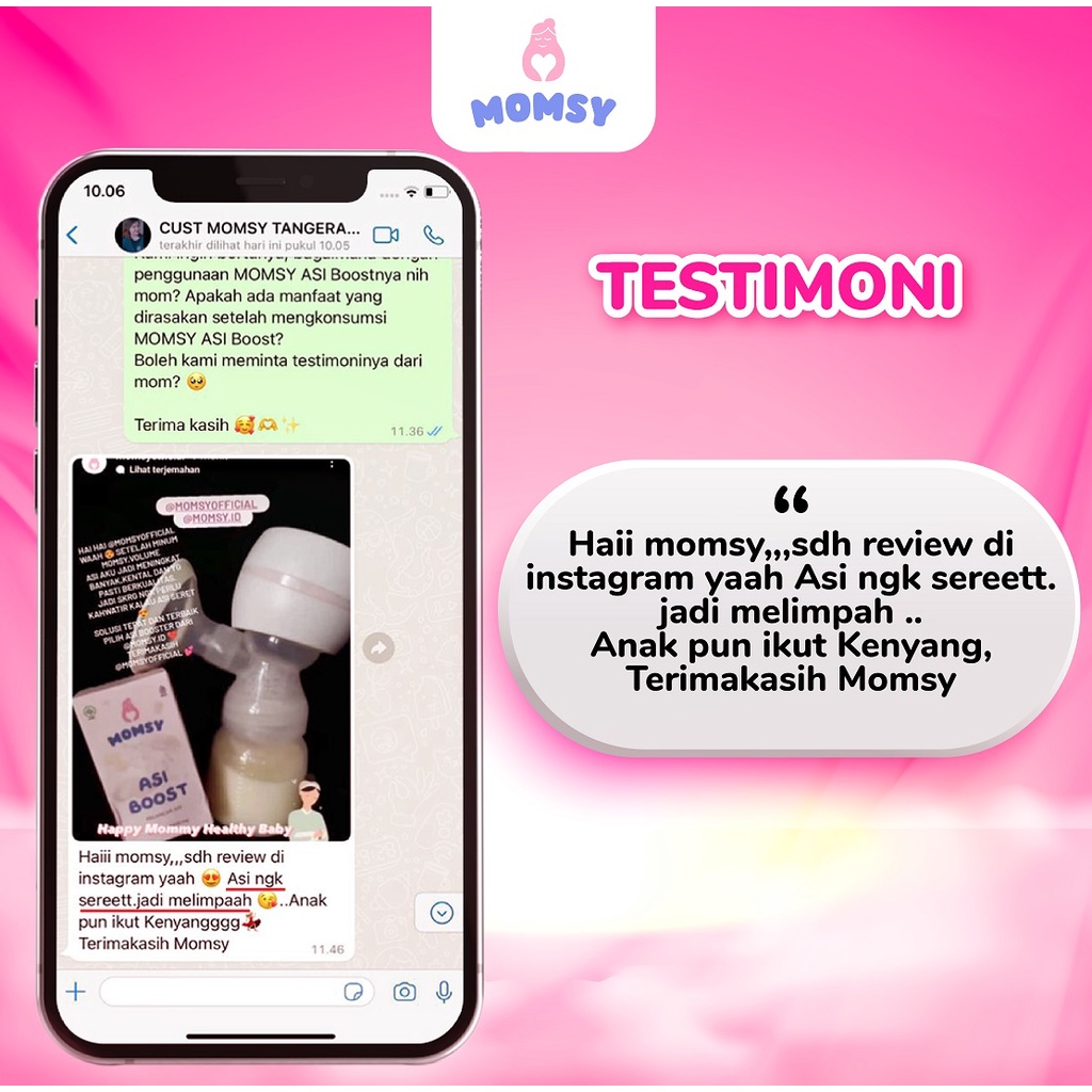 ✅Momsy berfokus pada pemenuhan nutrisi Ibu dan si buah hati melalui ASI Booster yang mengandung bahan alami dan sudah teruji klinis meningkatkan produksi ASI.✅