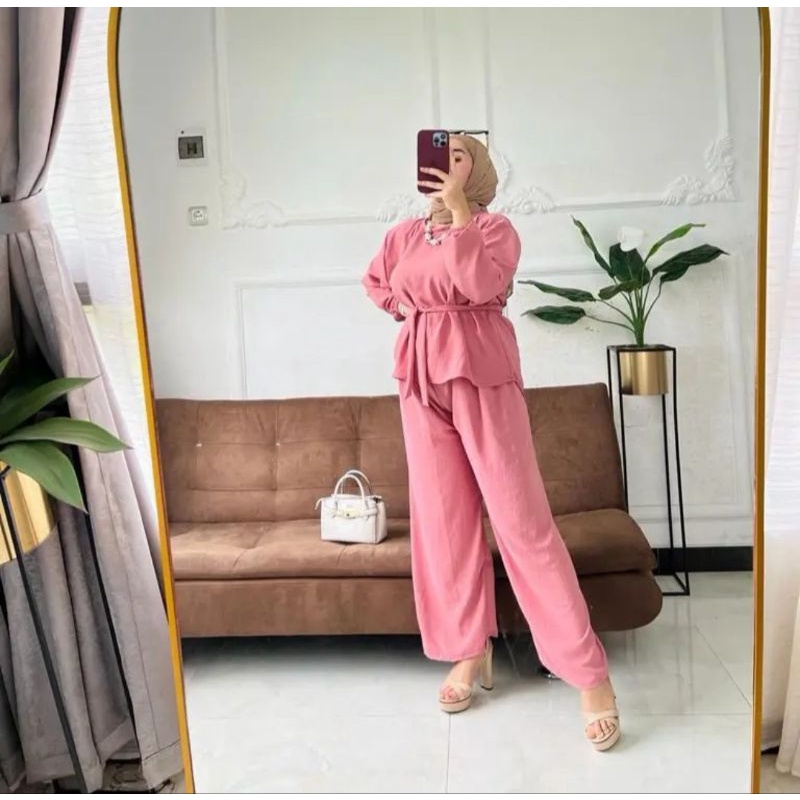 Mela one set crinkle airflow cocok banget buat daily outfit atau hangout bahannya adem dan ringan di pakai
