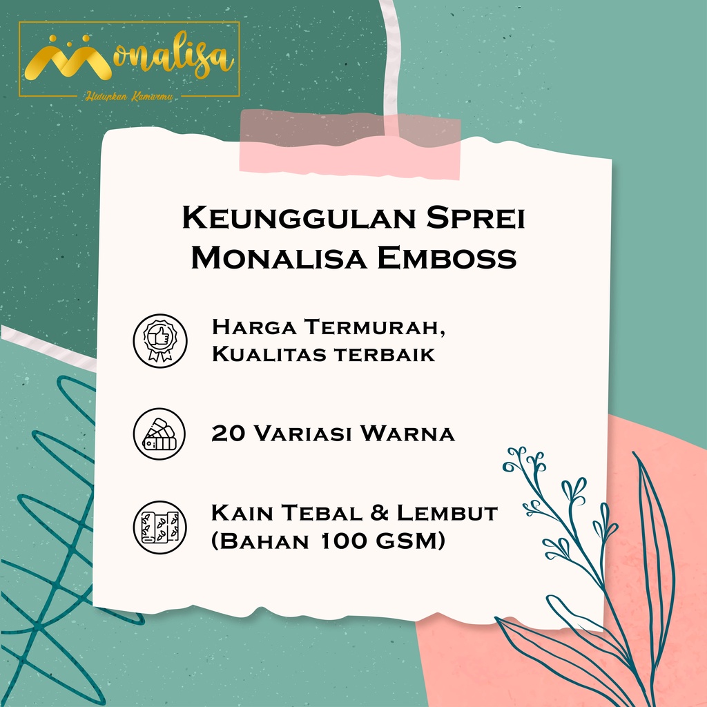 Video perkenalan produk Monalisa Emboss Sprei Uk 90/100/120 - Sage. Sumber: Shopee.