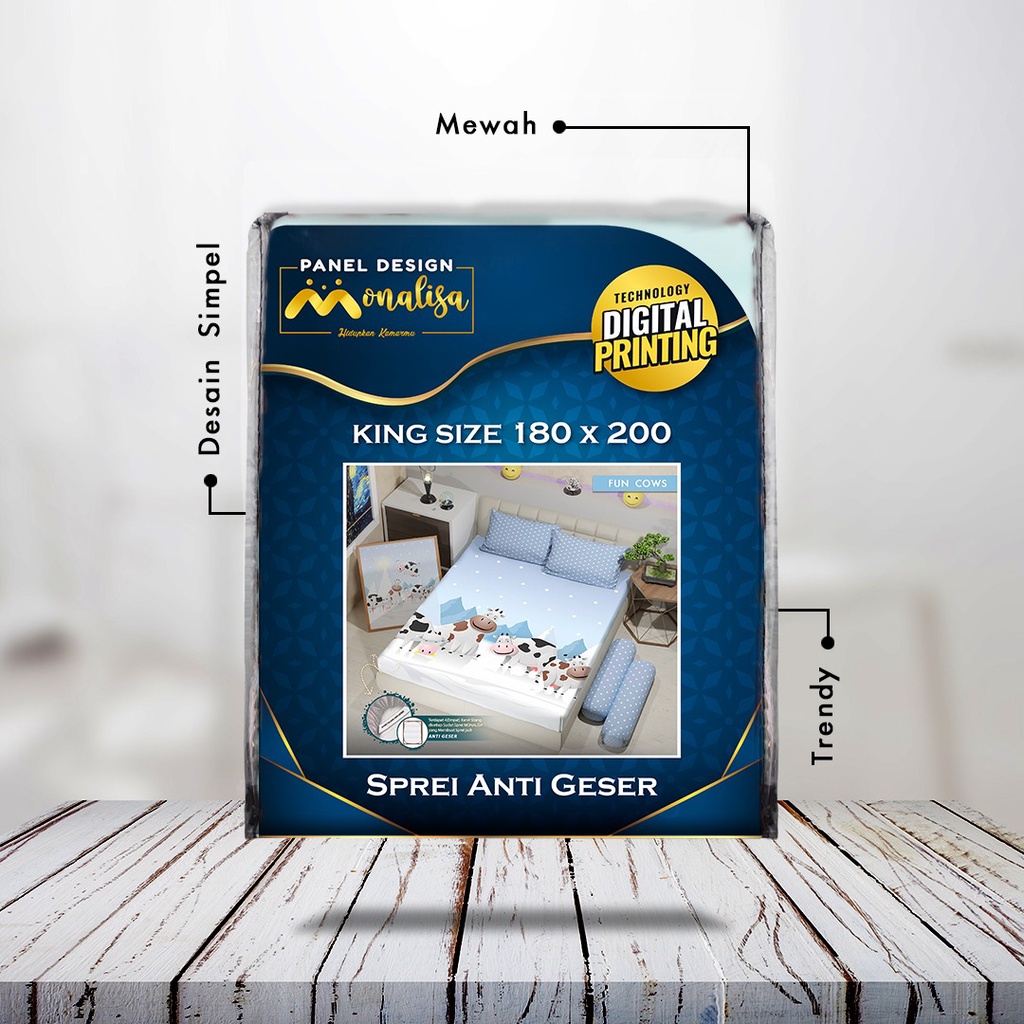 Alasan Harus Memilih Sprei Monalisa Panel Design : ❤ Tidak akan LUNTUR ❤ Menggunakan Teknologi Digital Printing ❤ Anti geser, karena memiliki Double Karet ( Karet sudut dan karet Anti geser ) di setiap sudutnya sehingga sprei menjadi Anti geser ❤ Menggunakan kain side A dan B, sehingga motif di bantal guling berbeda dengan motif di sprei ❤ Tersedia 4 ukuran, yaitu : 90 , 120, 160 dan 180 ❤ Tinggi Sprei 20 cm. ❤ Tampilan Packing Mewah