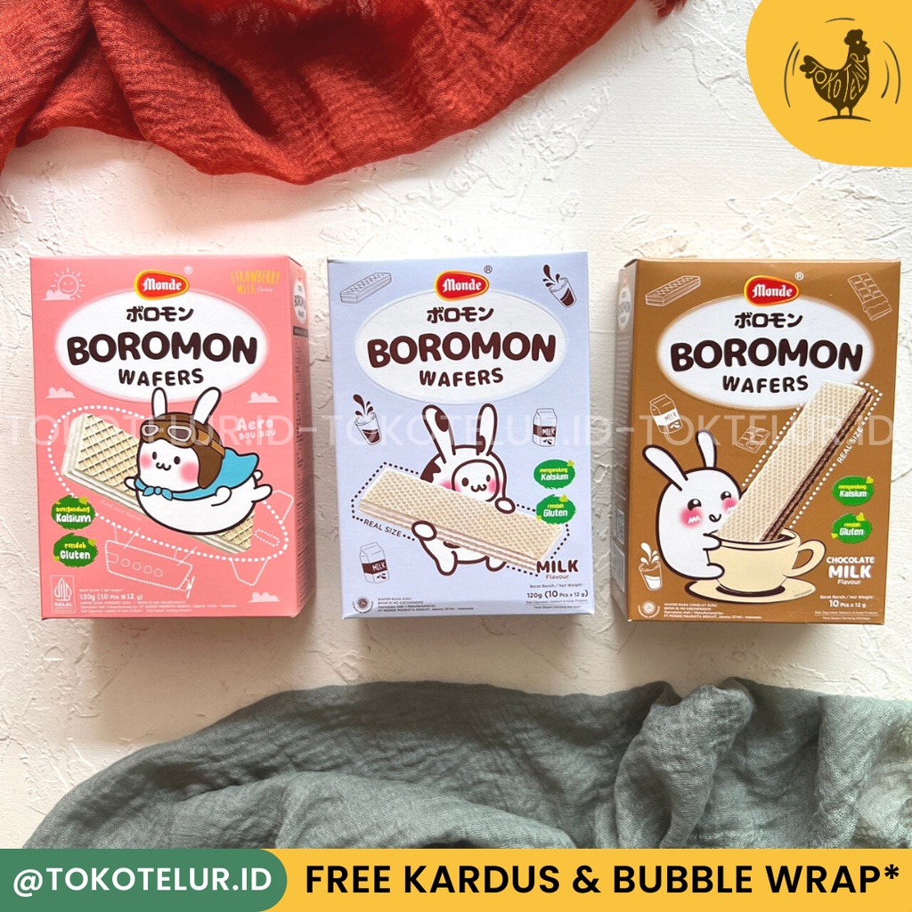Monde Boromon Wafer merupakan wafer halus dari Monde, lebih kepada snack untuk balita. Wafer renyah dgn ekstra kandungan susu yg disukai oleh anak2. Boromon Wafer ini, dibuat esklusif utk cemilan berkualitas bagi anak anda mulai 1 tahun keatas. Dgn ke-esklusif-an ini, Monde menciptakan Boromon wafer dgn penuh cinta buat anak anda bahkan juga baik utk segala usia. Dibuat dgn bahan khusus yg bebas gluten, dan mengandung kalsium serta berbagai vitamin yg baik untuk tubuh, dgn kandungan ekstra susu dalam krim lembut berbagai rasa.