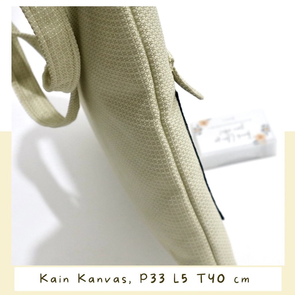 Anti melar Jahitan rapi dan kuat sehingga tahan lama Bahan kanvas ( bahan Tebal Lembut dan nyaman dipakai) Ada Furing Tebal Di dalam Ada Resleting Size guide: Panjang 40 cm Lebar 30 cm