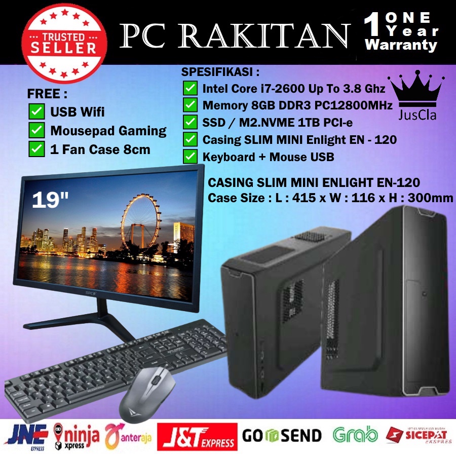 Komputer & Aksesoris > Desktop > PC Desktop > MONITOR 19"+INTEL CORE i7-2600 3,8GHz PC MINI SLIM, RAM 16GB|SSD NVME 1TB|KEY+MOUSE|WiFi, MINI Komputer Rakitan, MINI PC Admin/Office Baru Bergaransi 1 Tahun