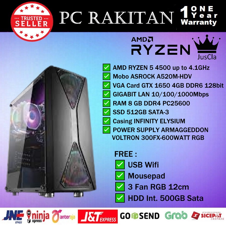 Detail MONITOR 22" + PC KOMPUTER AMD RYZEN 5 4500 4,1GHz|DDR4 8GB|VGA GTX 1650 4GB|SSD 512GB SATA|HDD 500GB|KEY+MOUSE RGB|USB WIFI