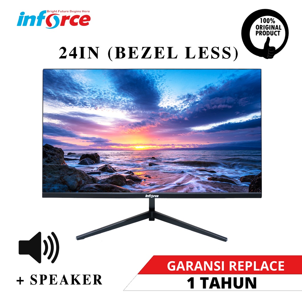 Monitor Inforce 24IN hadir dengan design yang elegan tanpa batas (Bezel-less) dengan tampilan visual yang halus dan jernih. Body monitor ramping menambah kesan kekinian dan mewah.
