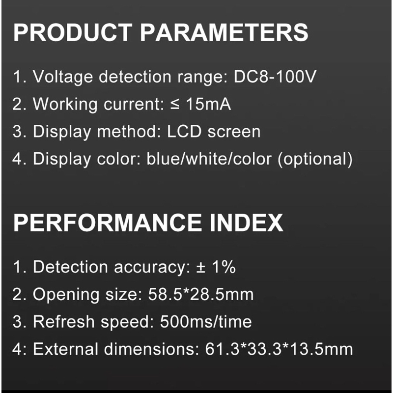 Detail Monitor Kapasitas Baterai 8sampai100v Battery Meter 12v 24v 48v Pengukur Indikator Tegangan Persenan Daya Baterai