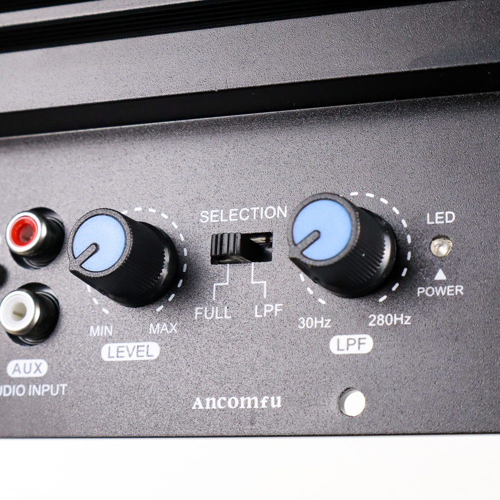 Fitur Pengaturan Volume dan LPF Terdapat knob putar yang dapat mengatur besar volume dan frekuensi LPF sehingga suara yang dihasilkan lebih memuaskan. Knob LPF ini digunakan agar sistem audio Anda dapat mendeteksi nada-nada rendah seperti bass.