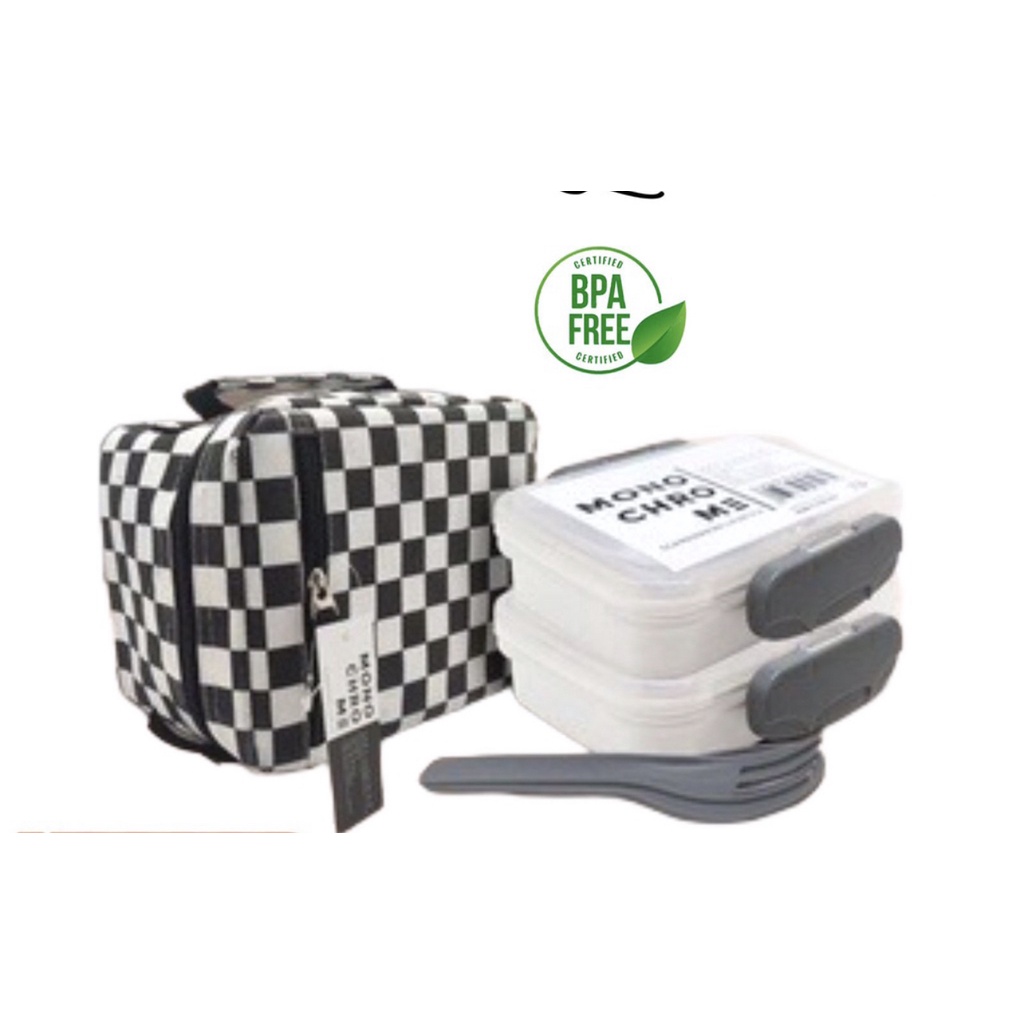 1 set terdiri dari: - 1 pcs tempat makan kapasitas 450 ml yang memiliki sekat Dimensi : 15,5 x 13 x 5cm (P x L x T) - 1 pcs tempat makan kapasitas 580 ml yang memiliki sekat Dimensi : 15,5 x 13 x 6cm (P x L x T) - 1 pasang sendok garpu Dimensi : 16,5 x 4 x 1cm (P x L x T) - 1 pc insulated lunch bag Dimensi : 19 x 14 x 11,5cm (P x L x T)