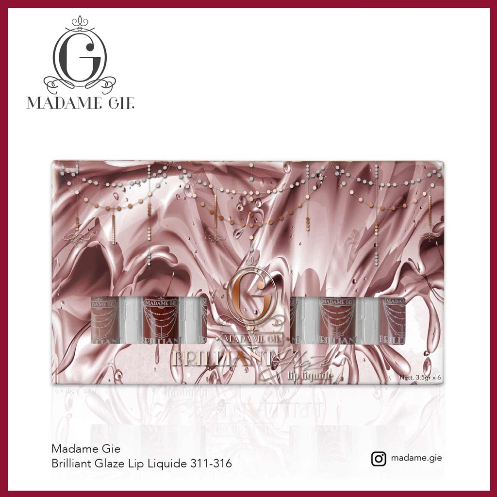 Madame Gie Brilliant Glaze Lip Liquide adalah Lip gloss dengan tekstur lembut dengan hasil akhir glossy, pigmented dan tidak lengket.