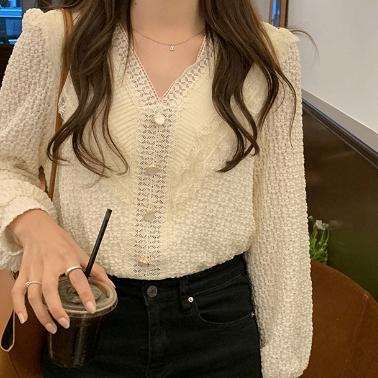 ☞ Ukuran: satu ukuran ☞ Bahan: bahan renda ☞ Jenis kerah: V-neck ☞ Warna: aprikot, putih