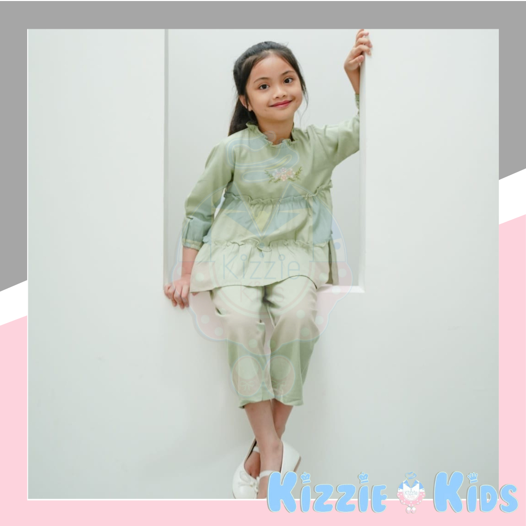 Fashion Muslim > Atasan Muslim Wanita > Tunik > Mooi Maira Tunik Set 1-10 Tahun Setelan Raya Anak Perempuan / Setelan Tunik Ruffle Lebaran / Shafa Tunik