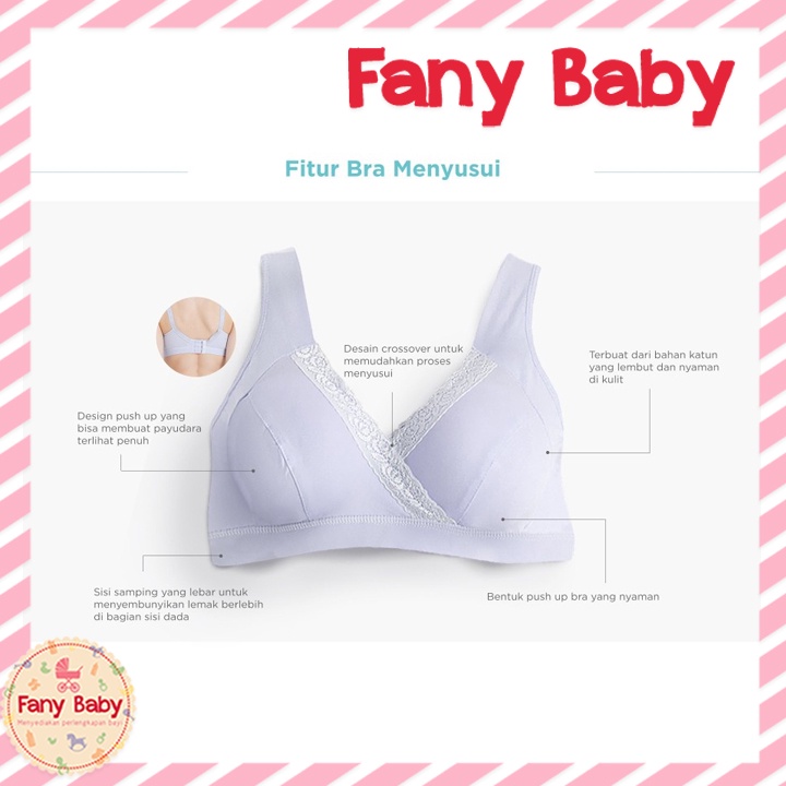 *Tanpa kawat dan tidak menekan *Design crossover bra memudahkan Anda untuk menyusui *Tali strap yang lebar mencegah payudara mengalami kekenduran *Menggunakan bahan 100% cotton yang nyaman *Design khusus membuat payudara tidak mudah bergeser posisi