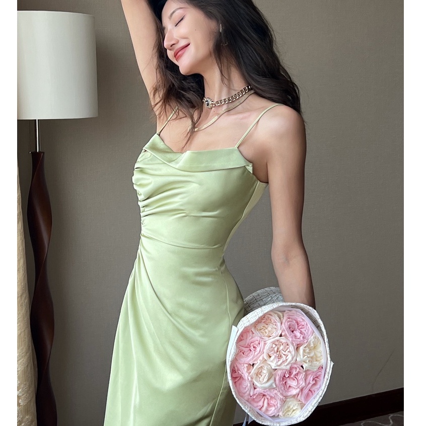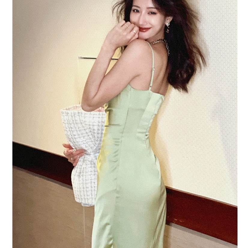 Video perkenalan produk 【Moon Blush】Summer Asymmetrical Slip Bodycon Sleeveless Green Midi Dress 7502. Sumber: Shopee.