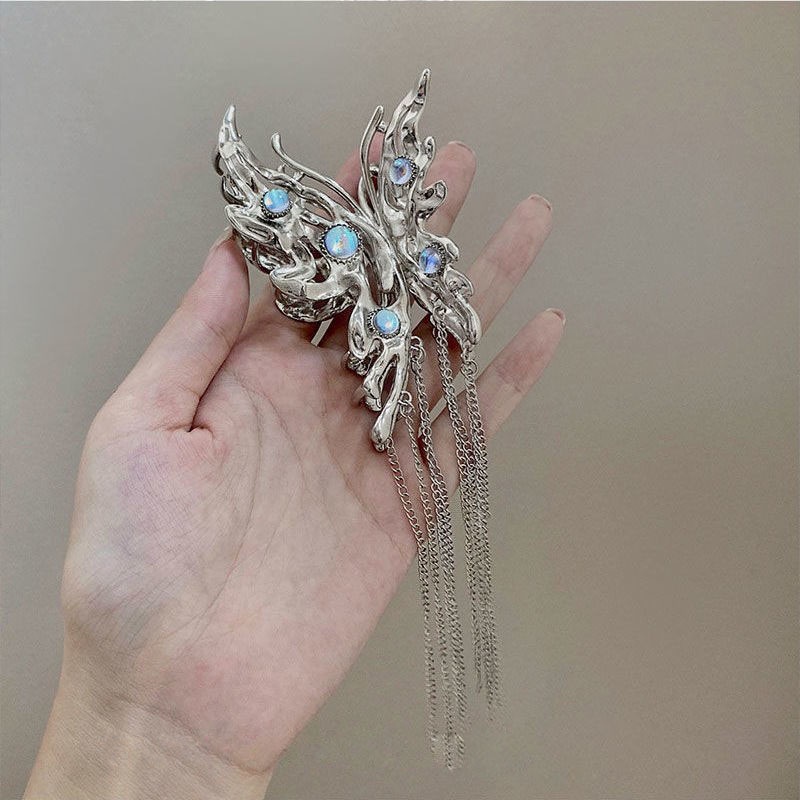 Detail Moonstone Butterfly Fringe Metal Fringe Jepit Rambut Kupu-Kupu Hiu Klip Aksesoris Kepribadian Versi Korea