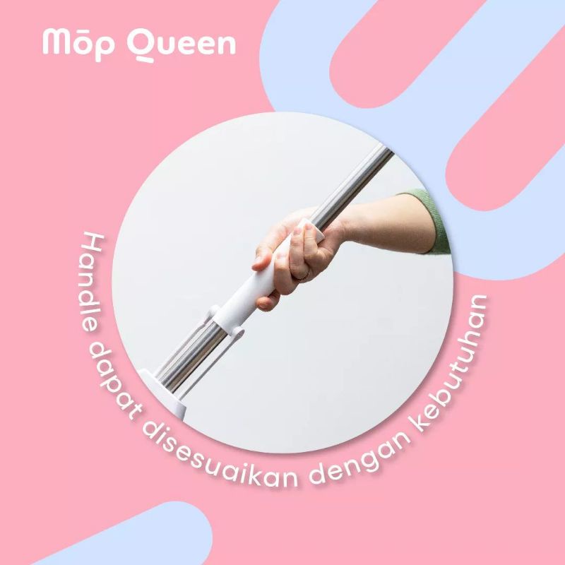 Spesifikasi MopQueen: ✅1 Sponge + gagang yang bisa di atur ketinggiannya ✅ Menyerap air dengan sempurna dan kering ✅ Dapat menjangkau sudut dan sela ruangan