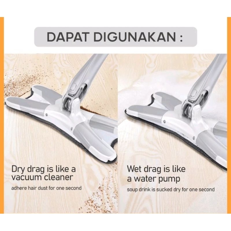 Alat Pel Lantai Serbaguna Alat pel lantai ini bisa digunakan dalam keadaan kering dan basah. Alat Pel ini bisa di pakai tidak cuman untuk mengepel lantai. Bisa juga untuk menyapu lantai. Memudahkan anda untuk mengepel lantai, menjangkau daerah lantai yang susah di bersihkan dengan keunggulan bentuk pel X