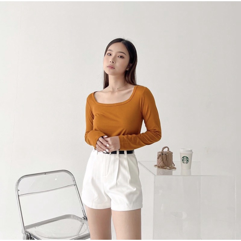 Pakaian Wanita > Atasan > Kaus > MORA SQUARE NECK LONGSLEEVE TOP KOREA - KAOS MANSET POLOS LENGAN PANJANG WANITA - PREMIUM TEE POLOS CUTTING WANITA COLORFUL - HADIAH / KADO ULTAH CEWEK