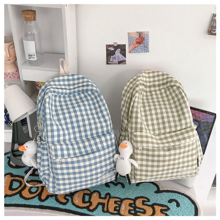 Tas Wanita > Tas Laptop > Ransel Laptop > Mores Tas Ransel Laptop Wanita Korean Nilon Import Remaja Kuliah Sekolah Kyo Plaid Korean Polyester Motif Gingham