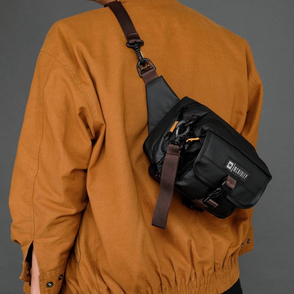 Detail Moria Black | Tas Slempang Hitam Pria Bahu Multifungsi Sling Pouch Mini Waistbag | FORIND x McKinley