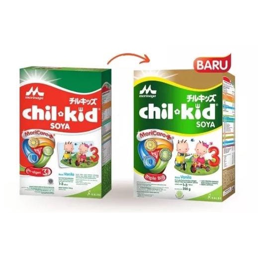 Morinaga Chil Kid Formula Soya, Susu formula pertumbuhan untuk anak usia 1-3 tahun, Satu-satunya Formula Pertumbuhan Tinggi Protein Soya dilengkapi dengan Sinbiotik (Sinergi Kombinasi Probiotik Triple Bifidus + Prebiotik Serat FOS).