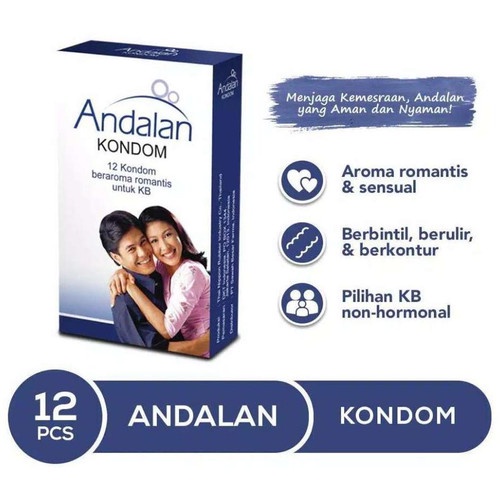 Kondom ANDALAN adalah kondom impor yang 100% lulus uji elektronis dan memenuhi Standar Mutu International tertinggi (ISO 4074) untuk menjamin perlindungan dan kenikmatan. bentuk kondom yang terbuat dari bahan dasar lateks dengan lapisan bahan sangat tipis yang berfungsi untuk mencegah kehamilan dan penularan penyakit seksual.