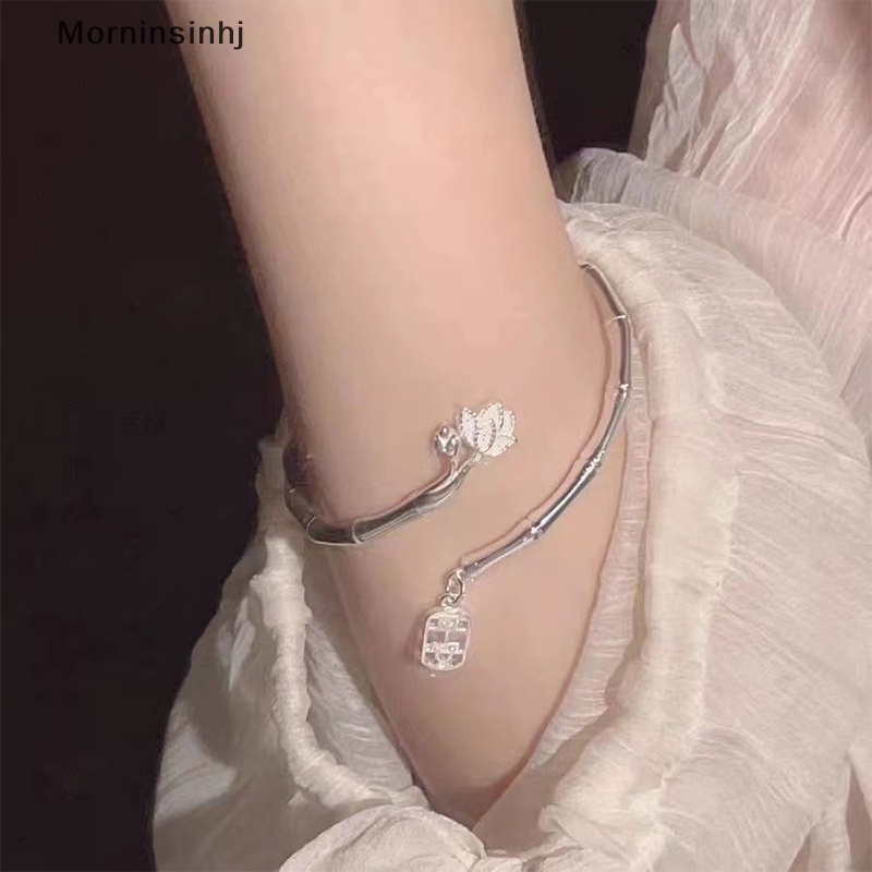 Aksesoris Fashion > Gelang Tangan & Bangle > Mornin Adjustable Beruntung Berkah Bambu Lotus Gelang Warna Perak Berongga Huruf Liontin Bangle Untuk Wanita Pembukaan Yang Dapat Disesuaikan Bangle Pesona Fashion Perhiasan Pesta id