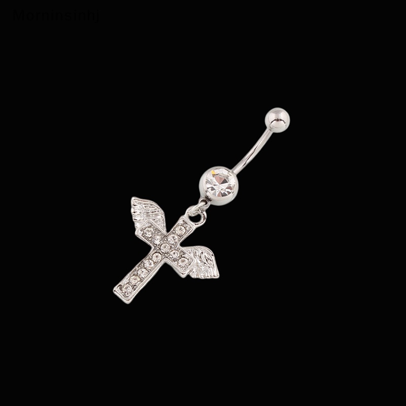 Mornin Aesthetic Shiny Wings Cross Belly Button Rings Untuk Wanita Punk Warna Silver Sexy Navel Rings Aksesoris Perhiasan Tubuh id