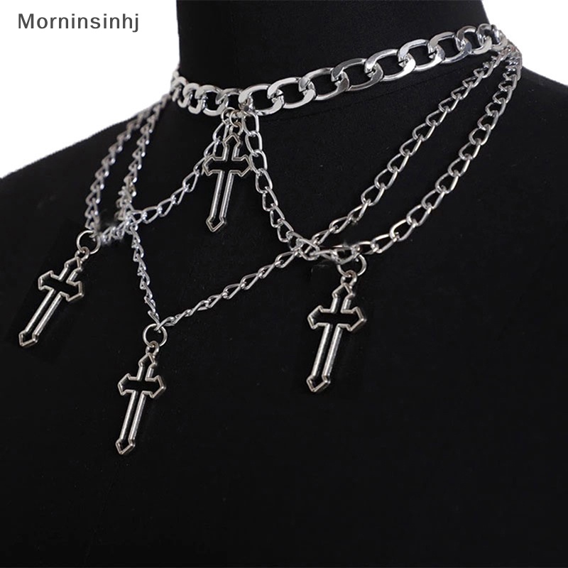 Mornin Goth Hollow Cross Choker Kalung Untuk Wanita Gothic Layered Chunky Pendant Necklaces Long Multilayer Chains Necklace id