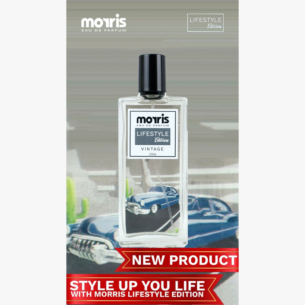 - MORRIS EAU DE PARFUM LIFESTYLE Edition VINTAGE Kombinasi aroma lavender, buah lemon & bergamot yang segar, serta woody memberikan kesan vintage bagi pemakaianya. Cocok untuk pria yang berpenampilan klasik dengan gaya vintage yang nyaman.