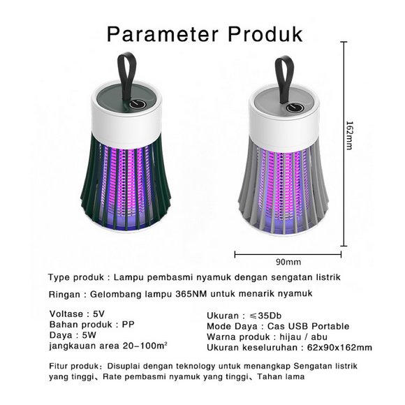 Spesifikasi Nyamuk Burung Bahan: ABS + BUAH. Panjang gelombang cahaya: 365nm. Tegangan: 5V. Daya: 5W. Warna: Abu-abu, hijau. Ukuran: 16.2x9x6.2cm. Area yang cocok: 20-50㎡.