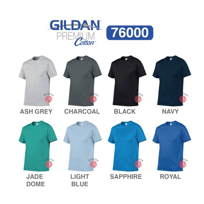 Detail Moteza Kaos Polos Combed 24s - GILDAN Premium Cotton 76000 - WARNA (Cool)