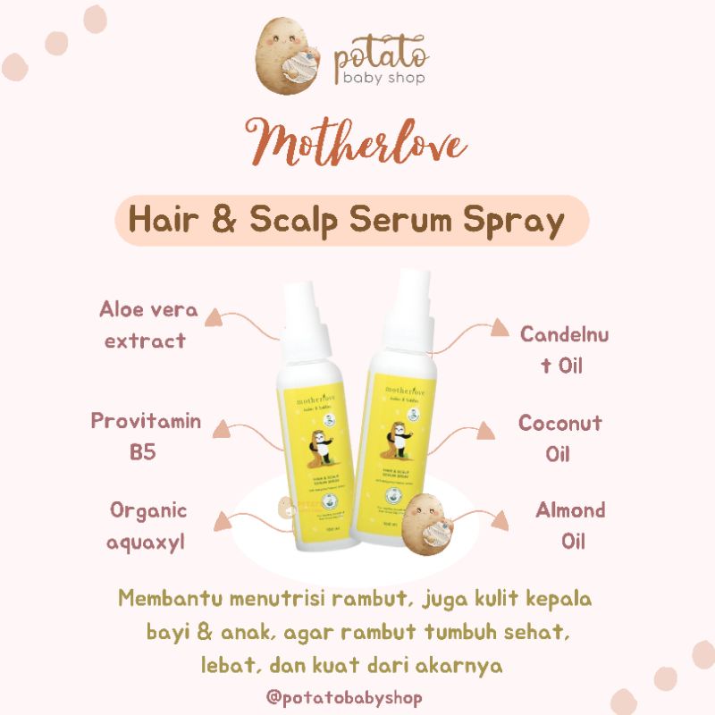 Motherlove Hair & Scalp Serum Spray pertama untuk bayi & anak-anak yang diformulasikan khusus Babyproof Natural Actives, untuk memenuhi kebutuhan rambut & kulit kepala bayi, serta anak.