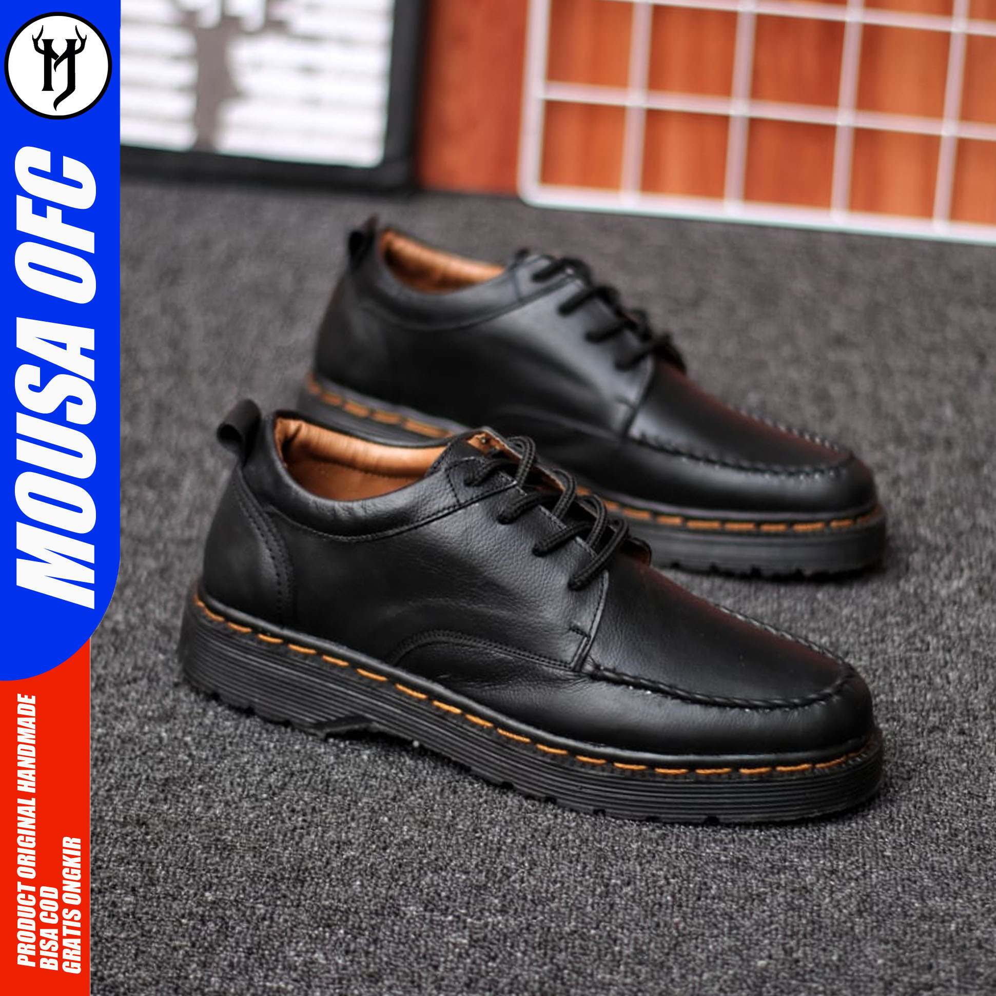 Detail MOUSA Sepatu Pantofel Pria Formal Oxford Kerja Kulit Asli Sun