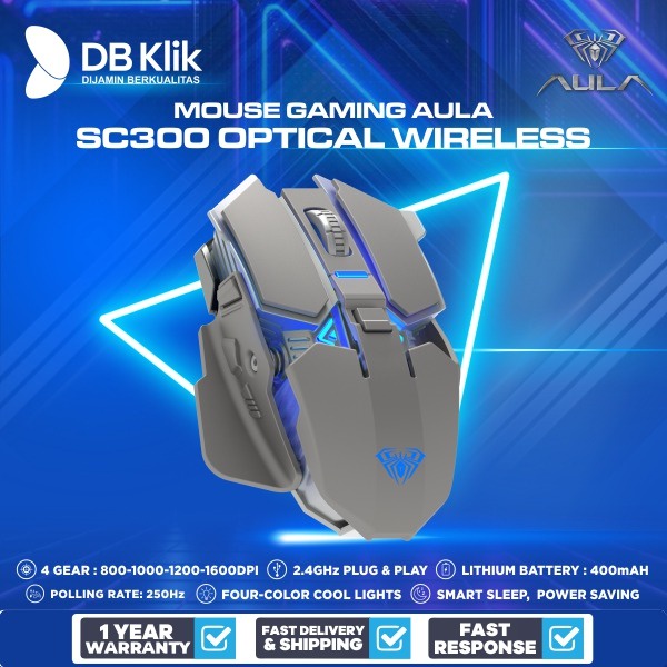 Wireless gaming mouse -Wireless connection -DPI: 800-1000-1200-1600DPI -Polling rate:Default 250Hz -Four-color cool lights -Smart sleep, comfortable and power saving -2.4GHz plug and play -Product size: 120 × 78 × 39mm -Lithium battery capacity: 400mAH -Operating system: Windows XP / 7/8 / 8.1 / 10
