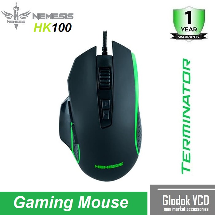 GAMING MOUSE WITH 4 DPI LEVEL AND 7 BUTTON GAMING FUNCTION NYK Nemesis Terminator adalah Mouse Gaming yang sudah dilengkapi dengan 4 DPI Level (800/1200/1600/2400), LED Lighting on Logo, dan 7 Tombol Gaming Function. Mouse ini juga memiliki desain ergonomis agar pas dengan tangan kamu saat bermain game.