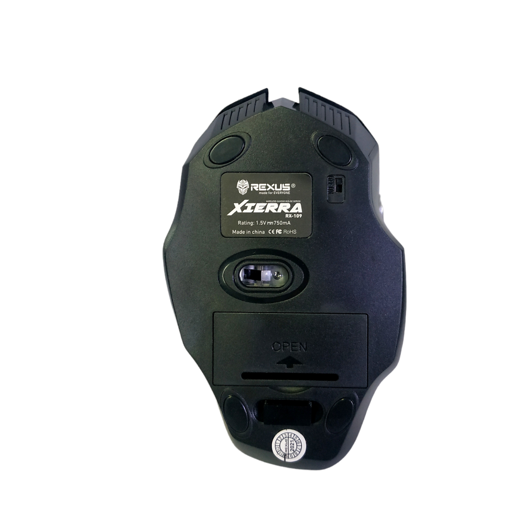 Spesifikasi Model : RX-109 Jenis Mouse : Nirkabel (Wireless) Akselerasi : 10G Kecepatan rata-rata per frame : 4000 Fps Kecepatan gerak : 30 Ips Resolusi : 2000 DPI Tingkat polling : 125Hz Jumlah tombol : 6 tombol Jangkauan wireless : 10 – 15m Dimensi : 120 x 70 x 36mm Jenis baterai : AAA (2 buah) Platform : Win7/ Win8/ Win 10/ Window Vista/ Window XP