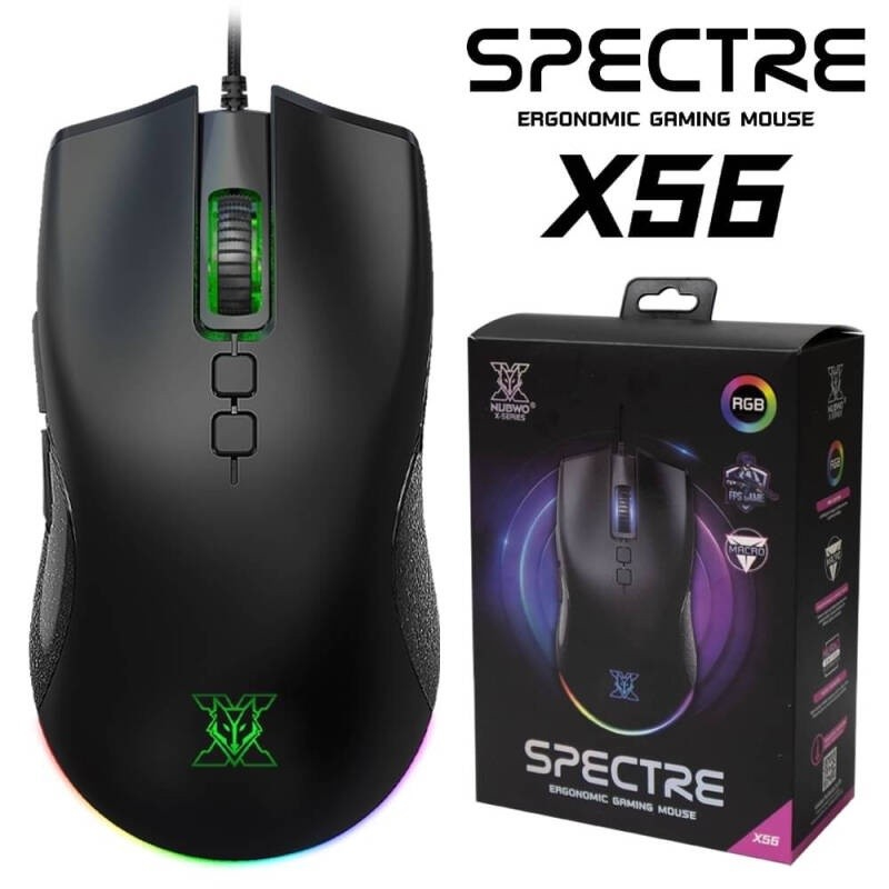 MOUSE NUBWO GAMING X56 SPECTRA 7200DPi + Macro X-Series - RGB Colour, Ergonomic Design, High FPS Gaming