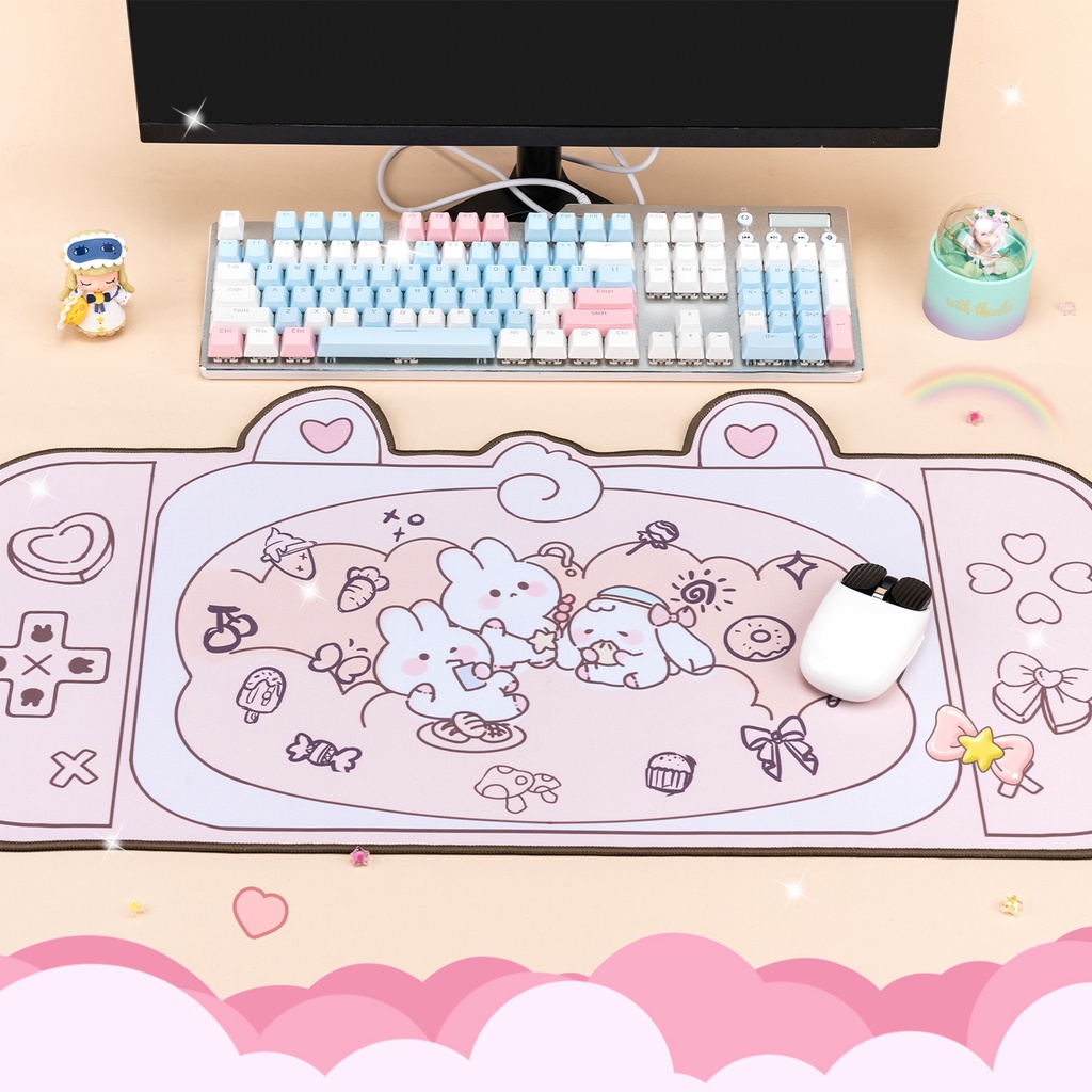 Detail Mouse Pad Ukuran XXL Anti Slip Tahan Air Motif Kelinci Sakura Pink Untuk Gaming