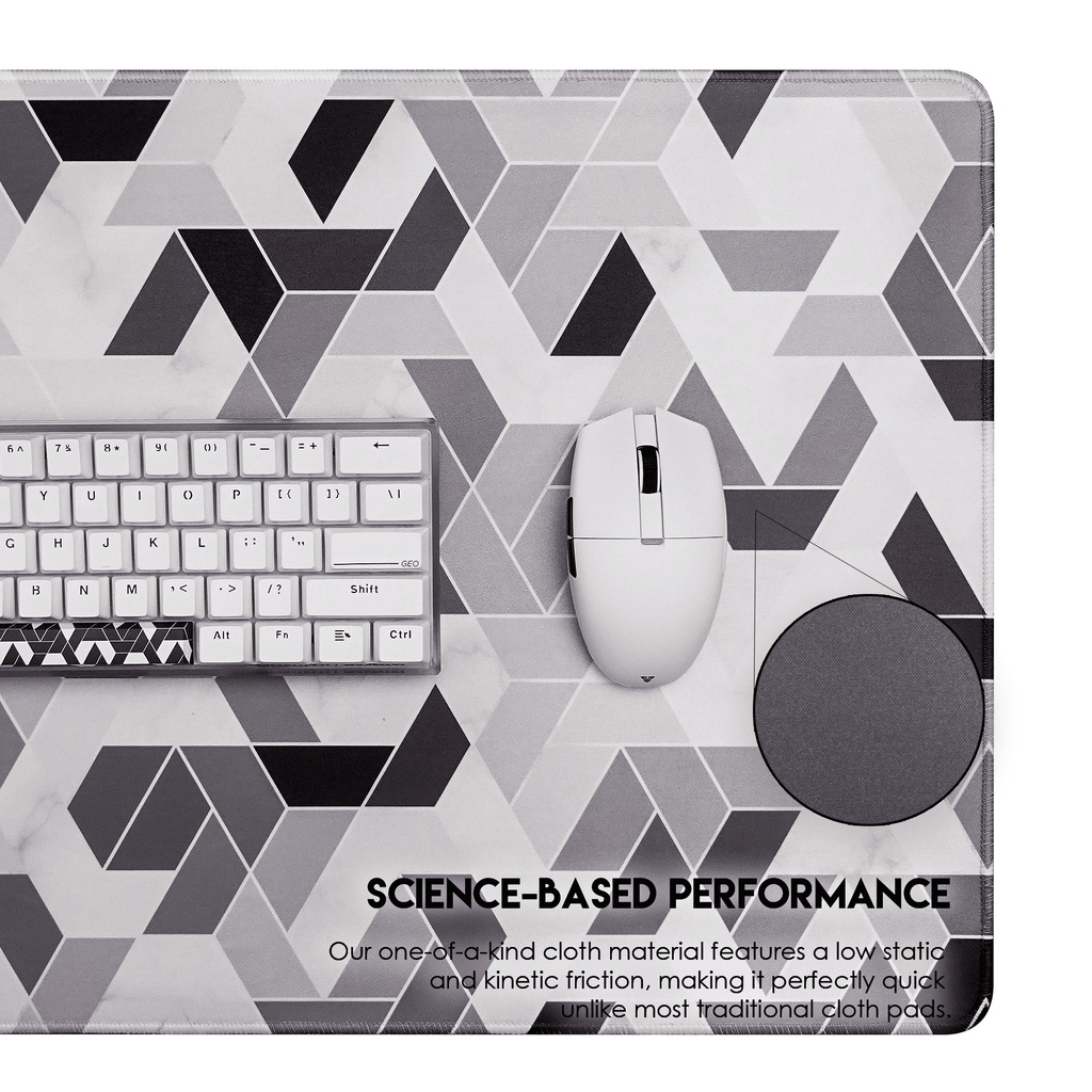 Science Based Performance Deskmat MP905 dibuat dengan material kain yang memiliki gesekan statis dan kinetik yang rendah. Material tersebut membantu mouse bergerak lebih cepat dibandingkan deskmat kebanyakan.
