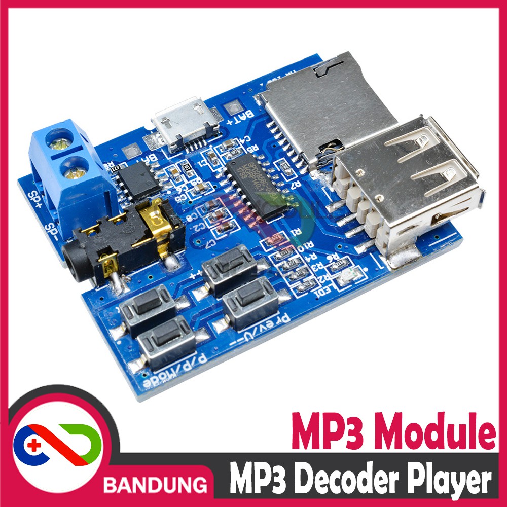 Fitur: ================================= - Kualitas suara super, onboard 2w mono amplifier (daya 5v, output 3w) dapat dihubungkan langsung ke speaker - Dilengkapi terminal speaker, tidak perlu solder - Dilengkapi juga soket headphone gold plated 3.5mm untuk headphone dan stereo luar - Konektor power micro USB, bisa dihidupkan dengan charger hp atau powerbank 5v - Bisa dihidupkan juga dengan batere 3.7v Lithium Ion - Bisa membaca Flashdisk (up to 32GB) dan SD Card / TF Card (up to 16GB) - Modul dirancang dapat dimodifikasi