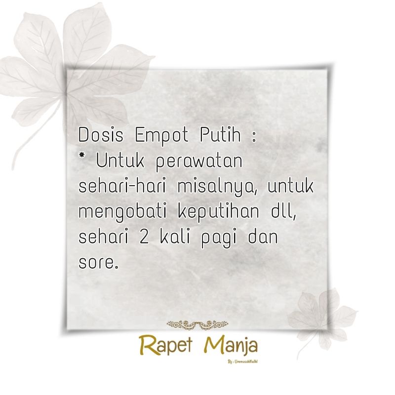 Note: Sebaiknya diminum dengan air hangat agar lebih cepat bereaksi. Sedang haidh/ nifas stop dulu minum empotnya, lanjut lagi minum empotnya kalau haidh/ nifas sudah selesai ya kak.