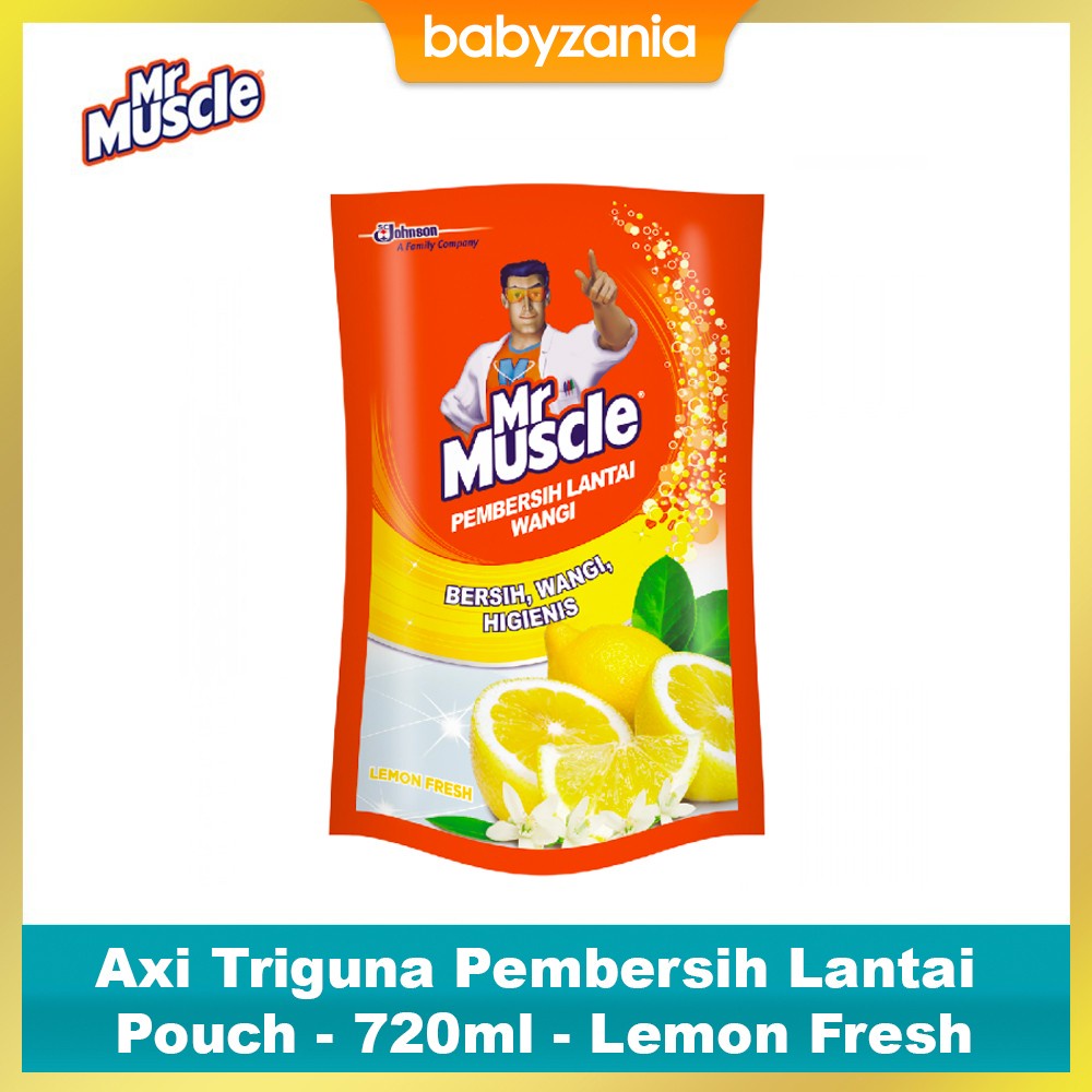 Mr. Muscle Axi Triguna merupakan pembersih lantai dengan daya bersih ekstra kuat yang mampu penghilangkan debu, kotoran, dan minyak pada lantai. Mengandung Benzalkonium Klorida yang efektif membunuh kuman penyakit dan menghilangkan bau tidak sedap, sehingga cocok juga digunakan untuk membersihkan kamar mandi.