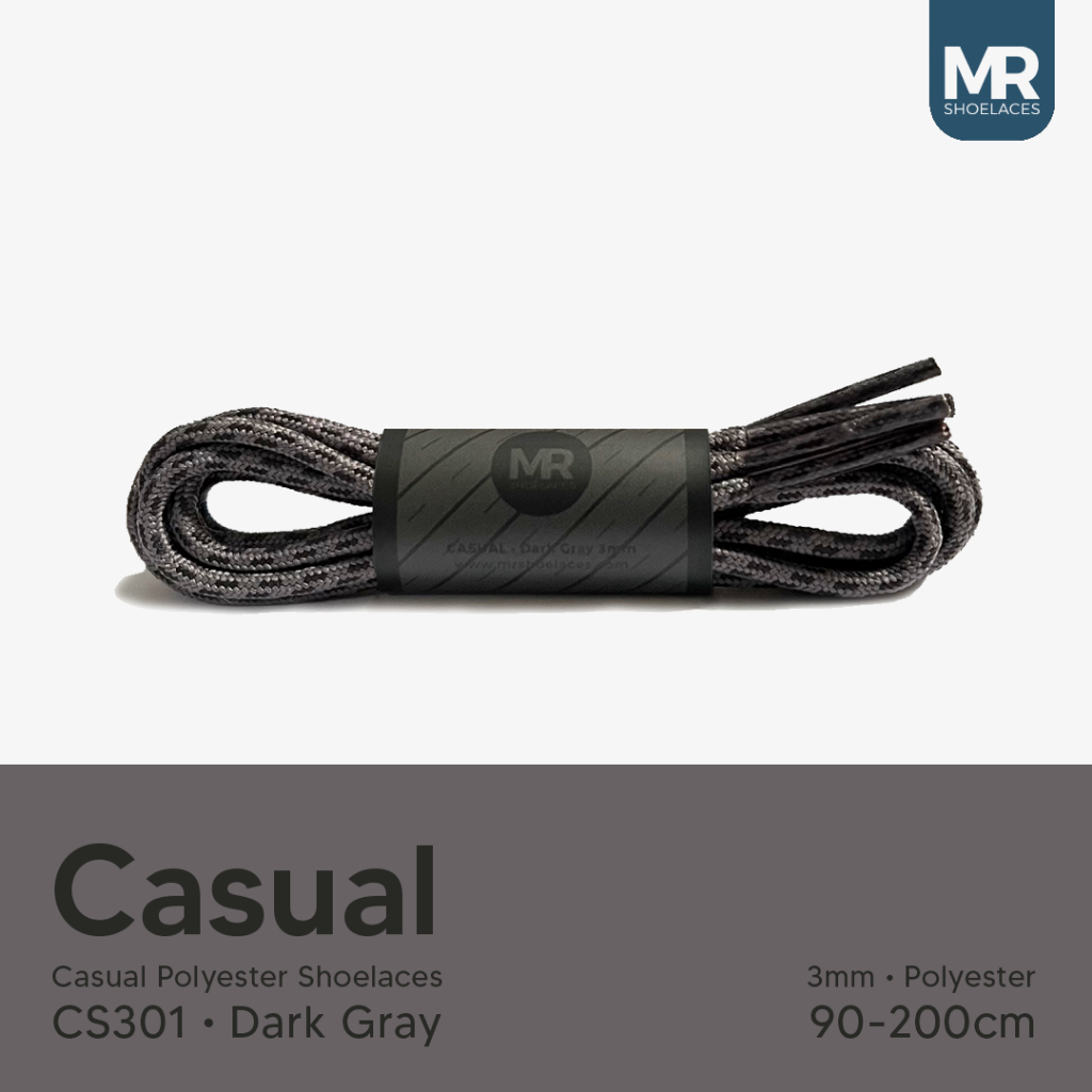 Detail MR Shoelaces CS301 Dark Grey (Abu Tua) Polyester Casual Tali Sepatu Bulat 3mm With Metal Aglet Dark Grey