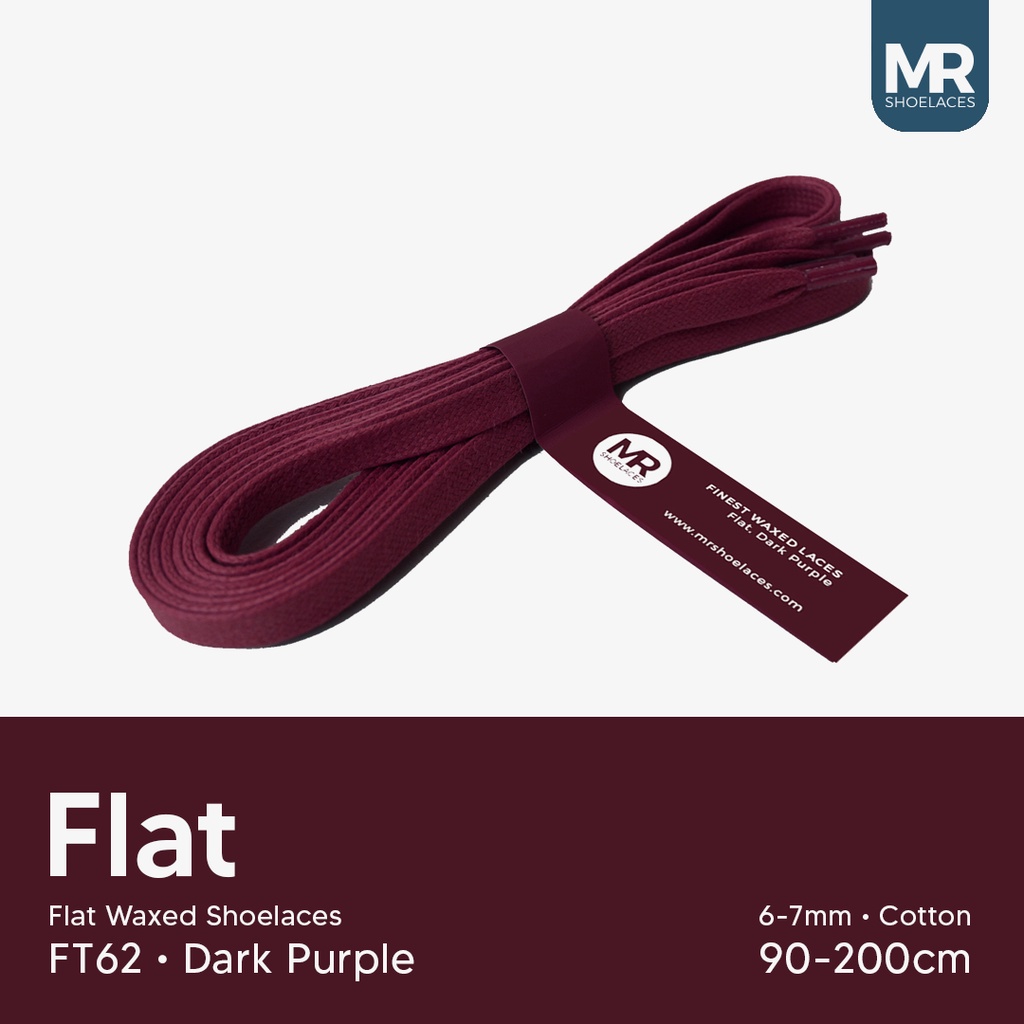 Detail MR Shoelaces FT62 Dark Purple Ungu Tua - Tali Sepatu Lilin 6-7mm Gepeng Flat Pipih (Waxed Laces) 90cm 100cm 120cm 130cm 140cm 150cm 180cm 200cm - Premium Shoelace